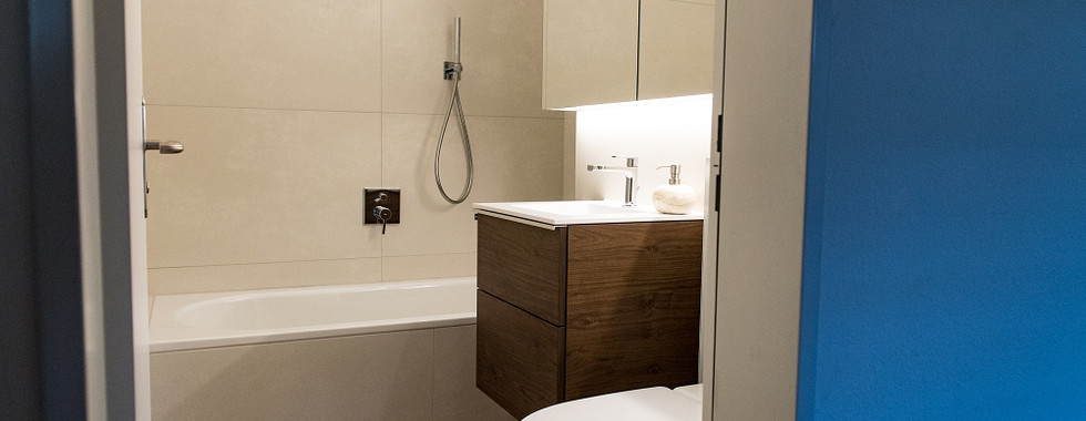 Bei dieser Neugestaltung der Nasszellen profitierte der Kunde von unserem "Rundum-Sorglos-Paket", indem er den Projektleiter-Umbau mit der Bauleitung beauftragte. Die Arbeiten dauerten insgesamt rund 24 Werktage.