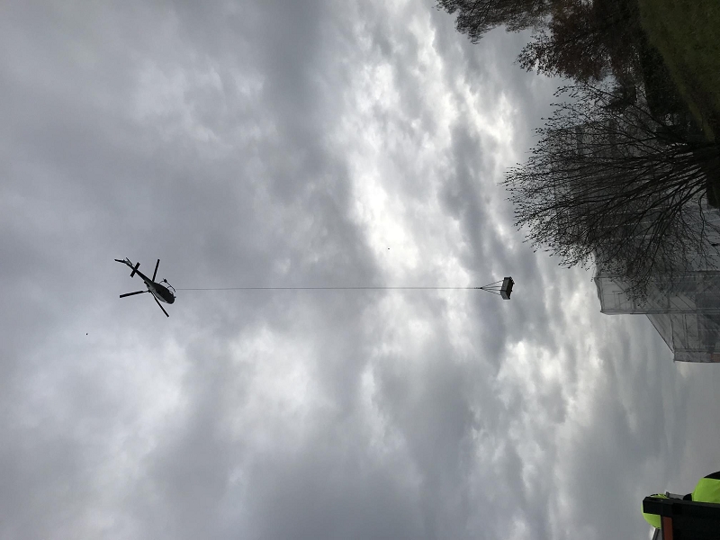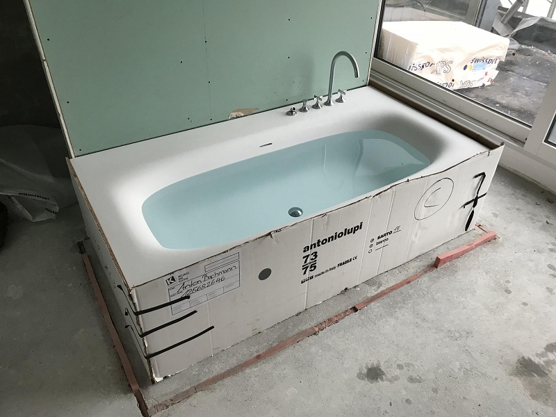 Dieser Umbau stellte unsere Mitarbeiter vor besondere Herausforderungen. Zum einen war die Badewanne enorm schwer und zum anderen passte sie weder durch die Hausflure noch durch die Türen. Für den Transport zur Baustelle musste deshalb ein Helikopter angefordert werden. Diese, für unsere Branche, aussergewöhnliche Beförderungsmethode wurde von einem unserer Mitarbeiter festgehalten.